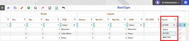 1.On the application home page, in the left pane, click Master Basis Type. The Basis Type workbench appears on the right pane like the one shown below:
